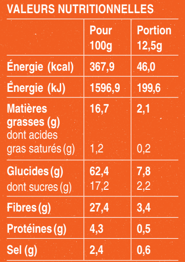 CAROTTES(77,5%)*, HUILE DE TOURNESOL*, SEL*, PIMENT DE CAYENNE*,AIL*, POIVRE DE SICHUAN (0,1%)*, BADIANE*, CANNELLE*, FERMENTS.